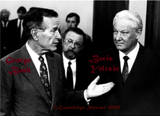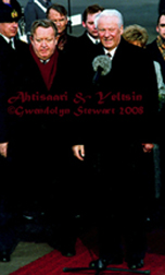 In March 1997 President Clinton was riding high, and Boris Yeltsin was down, way down, after multiple-bypass heart surgery. Eager to press his advantage on NATO enlargement, Bill Clinton very kindly allowed his summit with Yeltsin to be held in Helsinki, to make traveling easier for the Russian president. But it was Clinton who had to suffer being delivered from Air Force One by a Finn Air catering truck (he had injured himself coming down golfer Greg Norman's stairs in the dark, it was reported). Boris Yeltsin triumphantly descended from his new presidential jet under his own power. He did, nonetheless, however reluctantly, acquiesce in NATO enlargement. MORE ABOUT BILL CLINTON & RUSSIA
