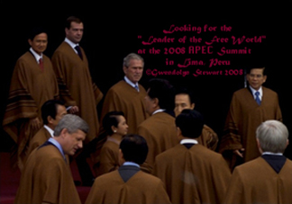 In the U.S. today, the veil over the stage management of presidential "news" slipped in a visibly scripted video-conference featuring George W. Bush and one Iraqi and ten American soldiers.